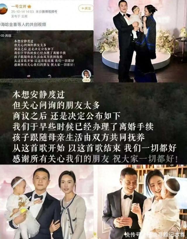 毕竟生活哪有那么多狗血,更多是“一边还债一边扛事”的平凡时刻,这种“分开护软肋”的担当,谁看了不共情? 更难得的是他们对孩子的保护。特意通过离婚辅导机制敲定抚养细节,小女儿至今还拿着他的照片说“想喝茶山故事”,这份爱从来没因为婚姻结束而打折。 如今,女儿李夏的抚养安排成为双方共同的牵挂。 海哈金喜将主要承担照料责任,李亚鹏则以共同抚养人的身份参与孩子成长。 事业上,两人也各自规划了新方向: 李亚鹏仍聚焦直播带货偿还债务,海哈金喜则计划深耕母婴品牌与个人工作室。 他们这场以“共创视频、无指责怨怼”方式收尾的离婚,被视为“体面分手”的标志性表达。 没有撕扯与互撕,或许是这对曾共患难的夫妻,给彼此最后的尊重。 婚姻从来不是童话,经济基础决定婚姻韧性,价值观契合才是长久的根基。 为什么李亚鹏离婚,网友还对他保持友好? 看看和李亚鹏交往过的女友就明白了。 2013日,王菲发文承认与李亚鹏离婚: 这一世,夫妻缘尽至此,我还好,你也保重。